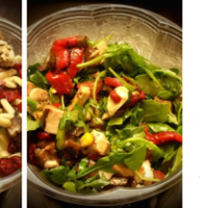 Romaine lettuce, ham, smoked turkey, Swiss and cheddar, boiled egg, cherry tomatoes, cucumber, bell pepper, carrot and broccoli with golden Italian dressing.